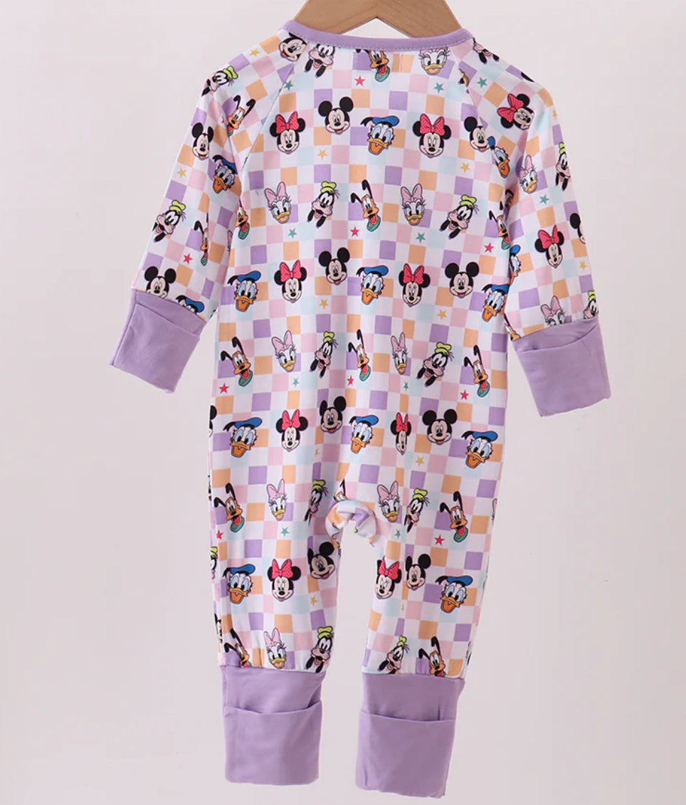 Bamboo purple checkered Romper